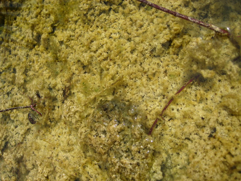 Nun zum Problem: Seit 2 Jahren ist überall im Teich, weißer, flockiger Belag auf Boden und Pflanzen. Nur und den oberen 10-20 cm. Geruchlos aber hässlich (siehe Gallerie)