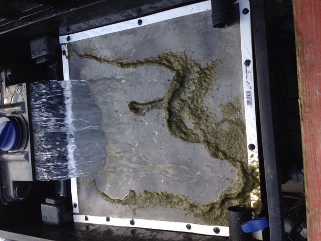 Ich bin nun dazu übergegangen, den Wasserstrahl im ersten Viertel des Screenmatic-Vlieses aufsetzen zu lassen und bekomme so ordentlich was weg.
