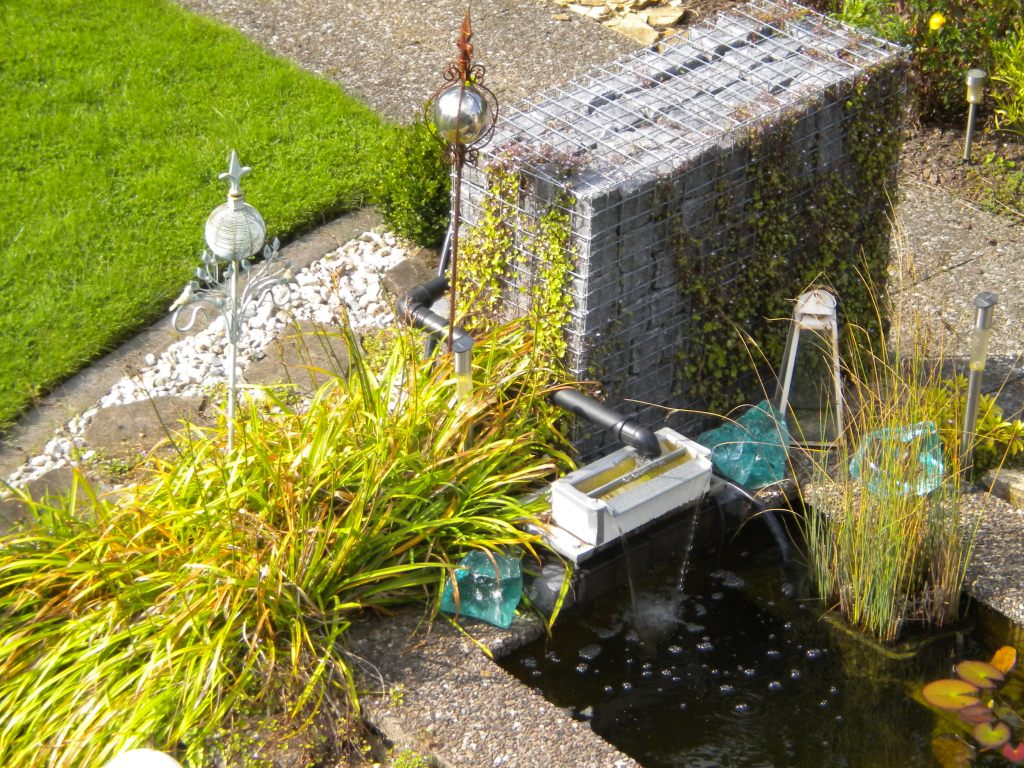 ich möchte einen Wasserfall, 30 cm breit an meinem kleinen, uralten Teich, ca. 3,0 cbm, einbauen.