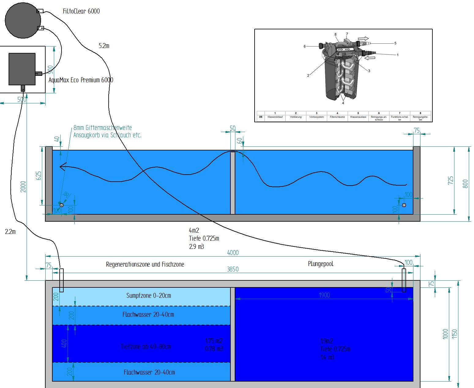 Könnt ihr mir sagen, ob die Ansaugung und Rückbringung des gereinigtes Wassers so ok ist?