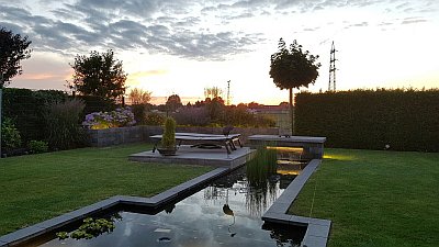 Im Zuge der Gartenneugestaltung hat uns unsere Fachfirma einen grösseren T-förmigen Teich angelegt.