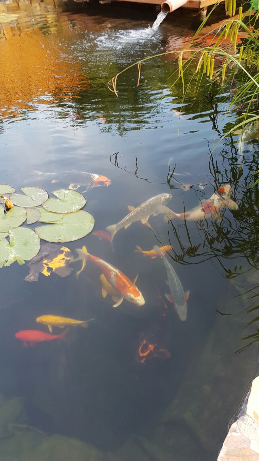 Wasserbewegung ist durch den Einlauf genügend vorhanden, also es gibt keine Totzonen wo das Wasser evtl. abstehen kann oder so. Tote Fische oder abgestorbene Pflanzen habe ich auch nicht entdeckt. Ich habe einen Bodenablauf, der in eine Pumpenkammer führt und von dort das Wasser in den Filter pumpt. Also auch in den tieferen Regionen ist das Wasser in Bewegung.