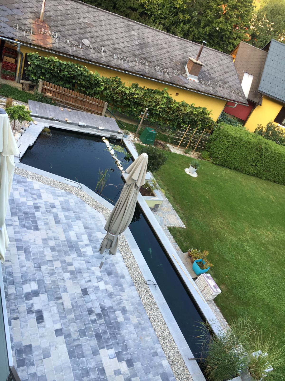 Habe "1" boden ablauf und und "1" Skimmer alles mit 110 verrohrt. Der aufstell Ort ist ca 1 bis 1.5 über dem Teichniveau.
