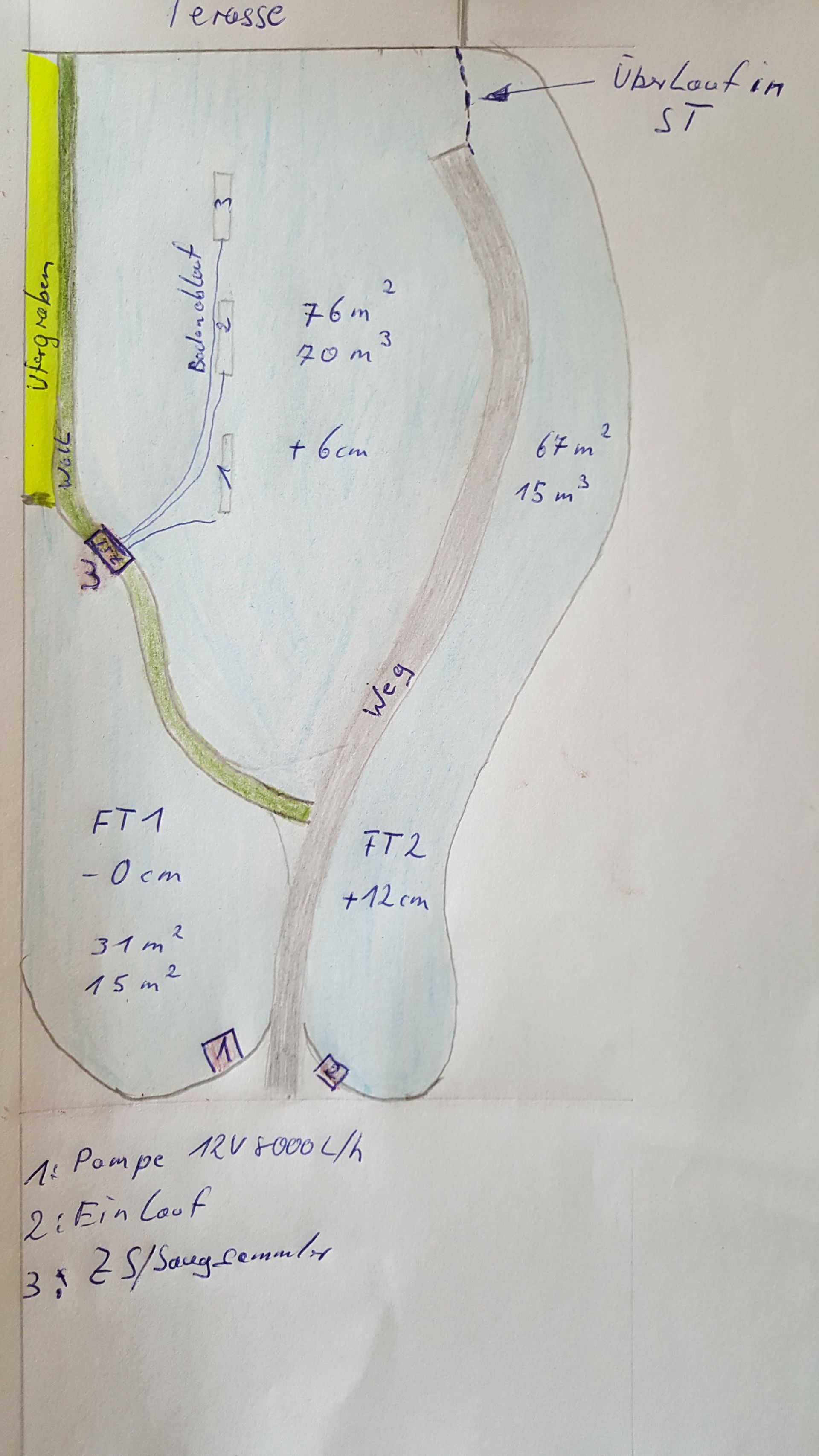 Schwimmteich + 2 x Filterteich ( seid heute mit kleinen Fischen 20 Modalieschen, 9 Bitterlinge im Filterteich