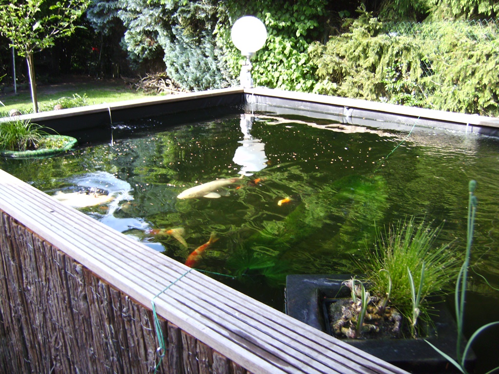 Jetzt im Frühjahr hatten einige Kois Probleme, wir haben einen Fachmann kommen lassen, der sich mit Kois und Technik sehr gut auskennt. Die Kois hatten Kiemenwürmer, die behandelt wurden. Dabei bemerkte der Fachmann, dann unser Teich von 350 x 250 x 110 zu viele Kois beherbergt. Auch hat er uns geraten, ein Teil der Schwämme aus dem Filter rauszunehmen und durch zurecht geschnittene Japanmatten zu ersetzen. Das haben wir auch gemacht. Wir haben 5 größere Kois drin von 30 - 50 cm und 7 kleine von 15 - 25 cm.