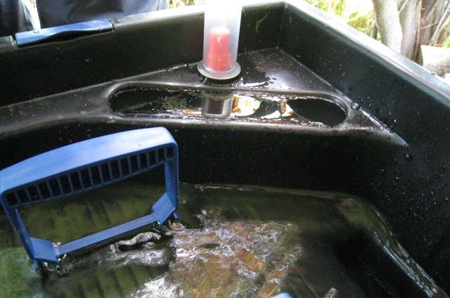 Nun gut, der Teich fast ca. 15m³, und es sind so einige Goldfische vorhanden, die aktuelle Anzahl kann ich nicht nennen, da das Wasser ziemlich trübe und warscheinlich auch sehr Algenlastig ist. Die tiefste Stelle liegt bei 1,50m, wo auch die Oase-Pumpe für den Filter liegt. Wir haben das Set soweit auch angeschlossen und dies läuft jetzt seit knapp einer Woche. Anfangs ohne das UVC Gerät, damit die Starterbaktieren reifen konnten. Inzwischen ist dies aber mit am Netz und die brühe aus dem Teich durchläuft fleissig den Filter.
