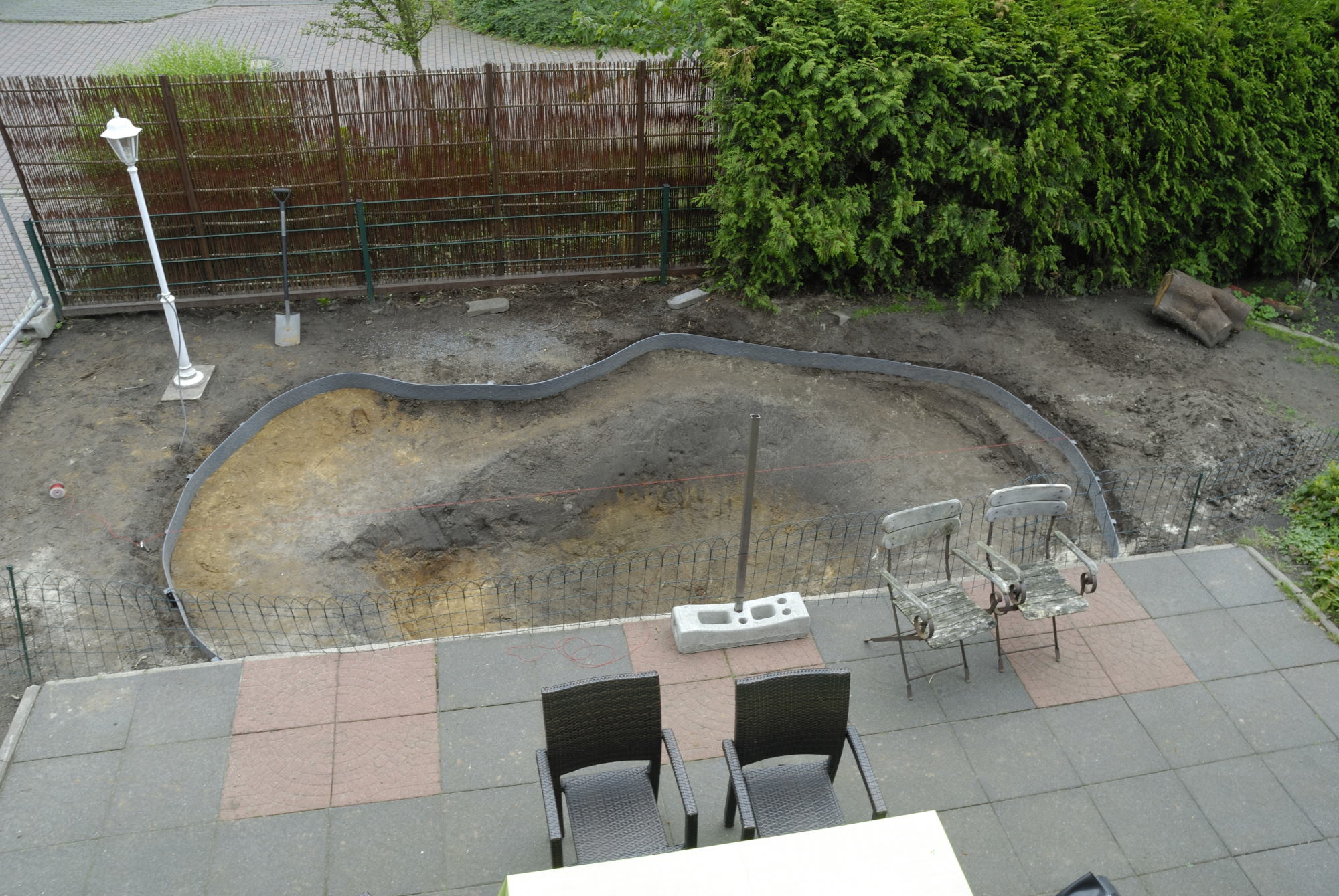Wir haben im Juli damit begonnen, einen Gartenteich direkt bei uns an der Terrasse anzulegen. Hat bis jetzt auch offensichtlich alles gut geklappt und ich möchte Euch ein paar Fotos nicht vorenthalten. Inzwischen ist der Teich auch ein wenig bepflanzt und Gestern haben wir ein BioSmart Set 14000 bekommen und es erst mal provisorisch von der Terrasse aus in Betrieb genommen.