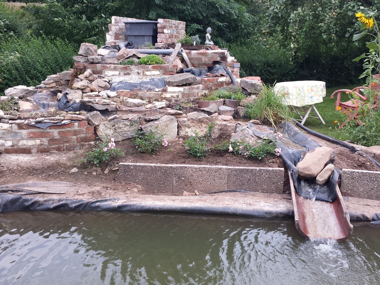 Ansonsten mal Bilder vom trüben Teich und dem fast fertigen Bachlauf ..