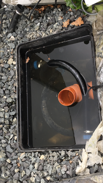 sieht man den filtoclear mit den anschlüssen und den starren, leider einbetonierten schläuchen. da ist also nicht viel platz, um was anzuflicken und die anschlüsse zu tauschen
