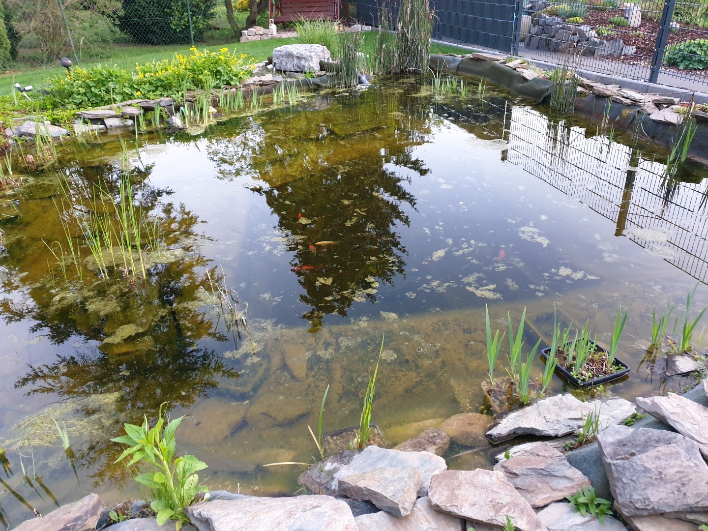 Hallo Teichfreunde, komme aus Hessen und habe einen ca. 16m3 großen und max. 1.7 m tiefen Teich mit CWS 25000 und Oase Aquamax Eco Premium 8000. Besetzt mit einigen Goldies und Rotfedern sowie 2 jungen Sonnnbarsche. Die große Sonnenbarsch Familie hat leider den letzten Sommer nicht überstanden.